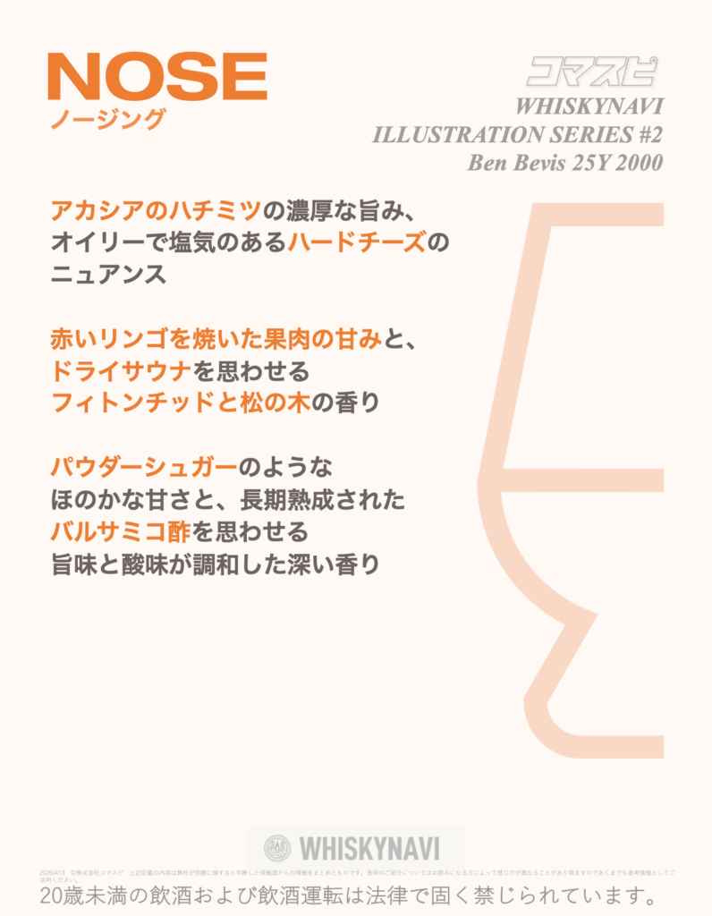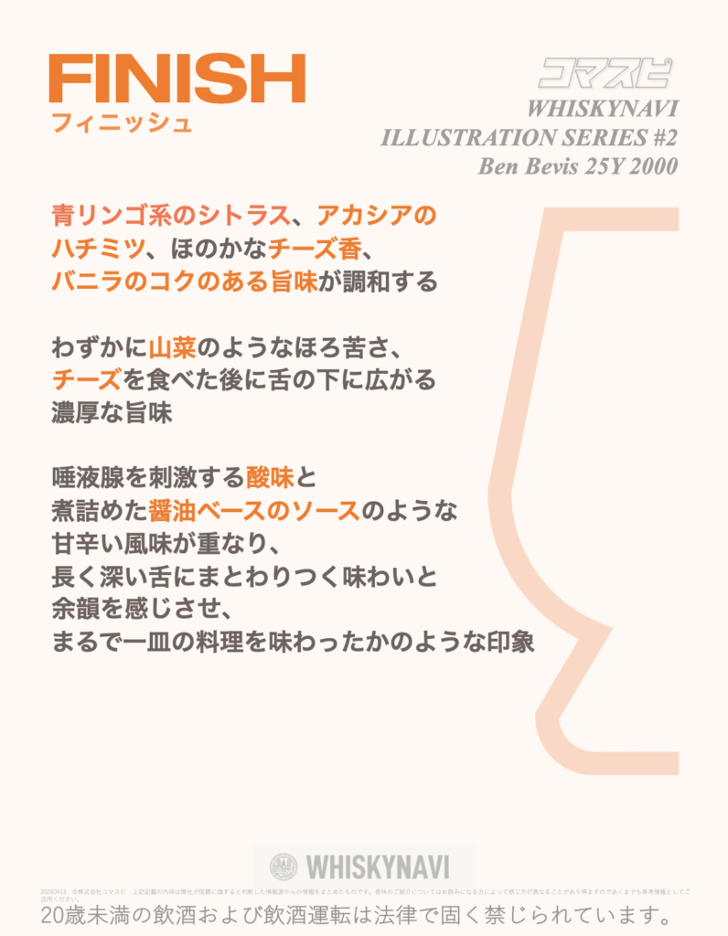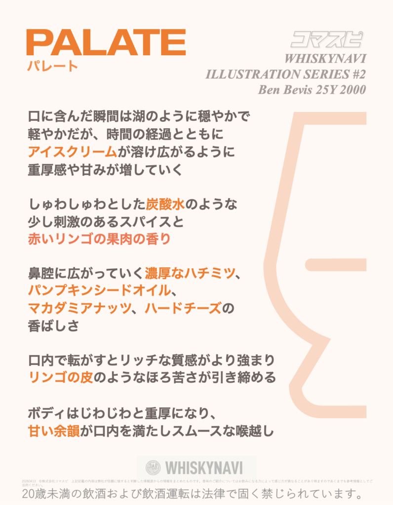 濃厚なアカシアのハチミツの甘さとチーズの旨味、爽やかなリンゴの酸味が重なり合い、まるで上質な料理を味わっているかのような複雑な魅力が際立つボトルです。